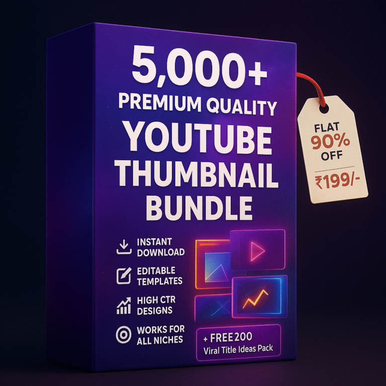 This is a one-time purchase! You pay the heavily discounted price of ₹199/- today and get permanent, lifetime access to the entire 5,000+ thumbnail library, plus the free bonus Viral Title Ideas Pack. There are absolutely no hidden costs or recurring subscription fees.